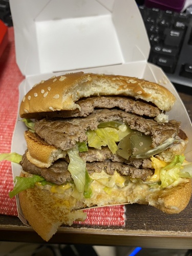倍ビッグマック、だそうだ。 凄い量…。 まあ何でも食べてくれればよし。