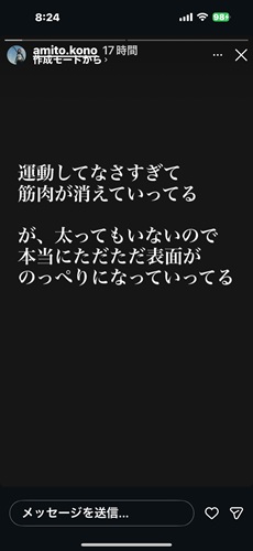 で、その髪を切った写真と上記の呟きがストーリーズに上げられていた。 だから運動しろって言ってるじゃんw
