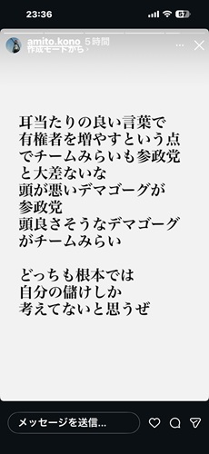 なんてやりとりをしたら↑をストーリーズにあげていた。 まあね、政治に興味があるのは非常に良いことだと思うので。 自分の頭で考えることが大事。